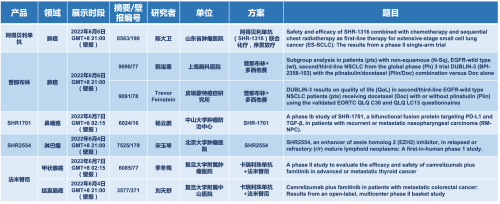 2022 ASCO年会另有5款AG官网医药上市前抗肿瘤创新药的相关研究被接收为壁报,包括SHR-1316、普那布林、法米替尼、SHR-1701和SHR2554,他们的单药或联合方案相关7项研究被接收为壁报,覆盖肺癌、鼻咽癌、淋巴瘤、甲状腺癌和结直肠癌等领域。